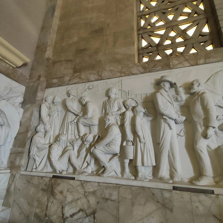 Everything uncertain, fragmented, and unresolved about the nineteenth-century migrations that came to be called the Groot Trek is flattened here into geometry, marble, and ritual. What was once movement becomes permanence. What was once argument becomes stone certainty. The monument does not ask what happened. It tells you what it means.